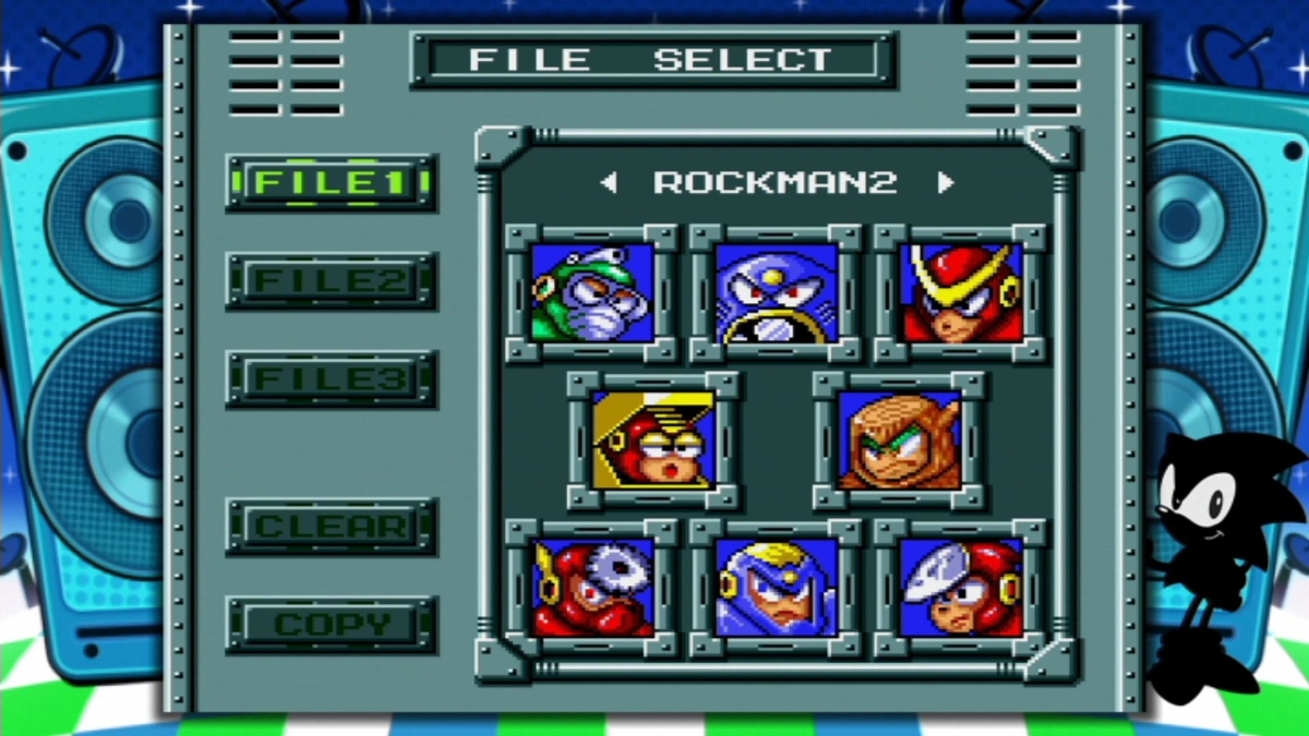 ゲームをスタートすると、まずはどのロックマンで遊ぶのか選ぶ画面が出てきます。
